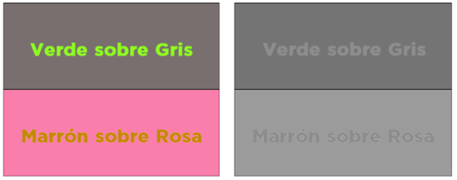 Frecuentemente, colores que parecen diferir mucho unos de otros en término de color (cromatismo), tales como verde y marrón o gris y rosa tienen una tonalidad muy similar y, por tanto, no proporcionan el suficiente contraste para ser útil.