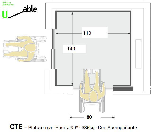 ![]() | PLATAFORMA SUA2 Puertas a 90º 385 KG – Para Silla “A”y”B” CON acompañante | 110×140 |