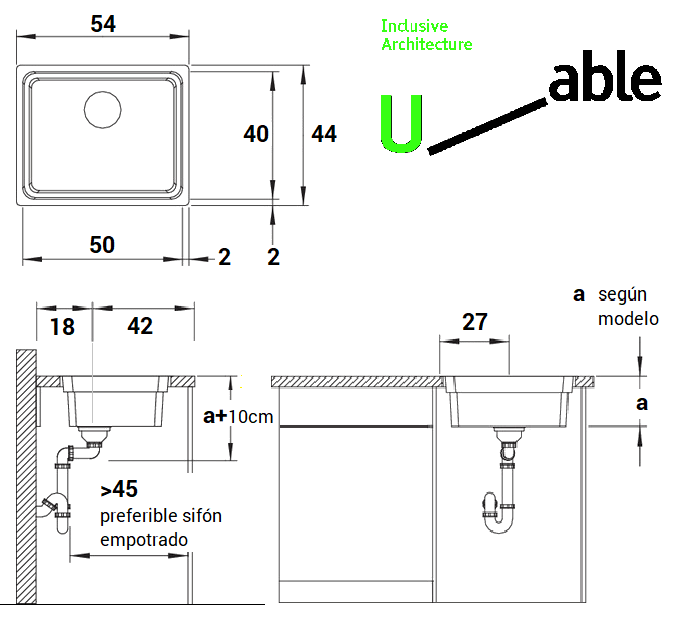 - Fregadero accesible para lavar los utensilios. ((altura <85cm, espacio libre inferior >70cm)