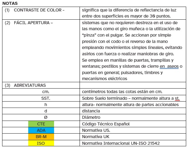 Toda la rotulación de accesorios e instrucciones, asì como el contenido de los armarios se rotularán por el exterior en letra arábica y braille.
