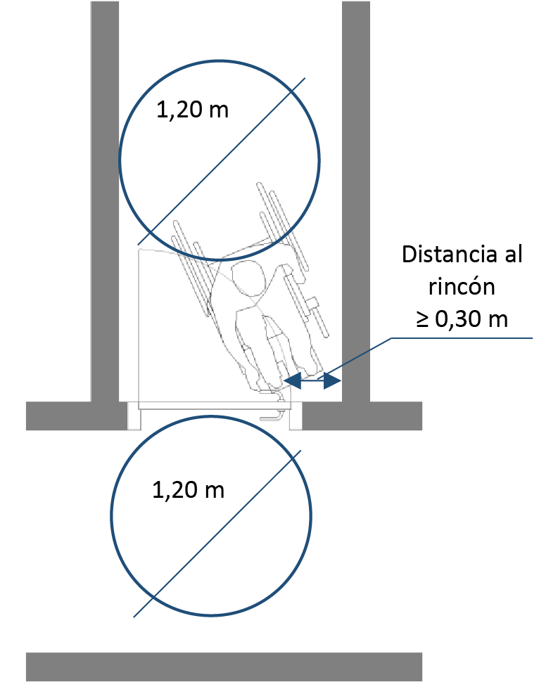 Se debe prever un espacio de giro de 150cm