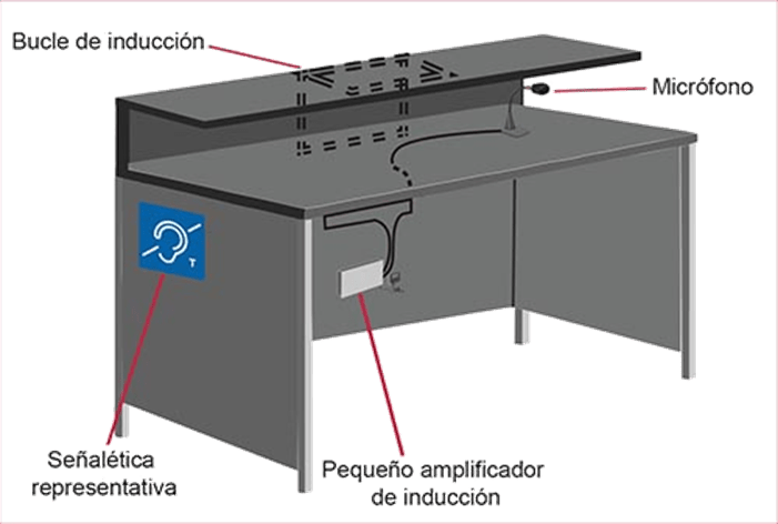 En el primer caso es fundamental que la persona mantenga una buena comunicación visual y auditiva con su interlocutor. (bucle magnético incluido) no es importante disponer de un espacio para personas sentadas y no es imprescindible llegar a “utilizar” el mostrador más allá que para depositar y recoger un documento que bien puede hacerse en los primeros 20cm del mostrador. Cualquier persona, independientemente de su altura o si utiliza o no ayudas técnicas para desplazarse (bastones, silla de ruedas, etc) podrá hacerlo con cierta “facilidad”