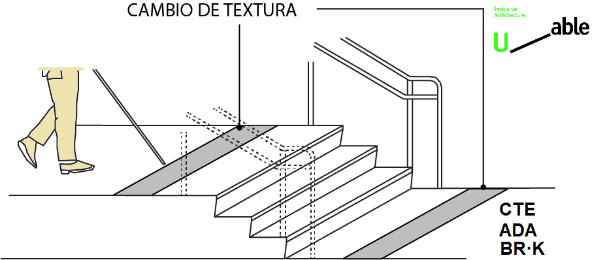 - Las personas con baja visión, detectarán que es una franja transversal (cuidado) y al ver el tamaño doble, comprenderán que están ante un espacio peligroso. Se detendrán de inmediato.