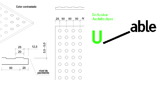 Éste es “lenguaje” de comunicación que utilizamos los diseñadores para comunicarnos con las personas con baja visión y es relativamente sencillo – aunque muy a menudo lo vemos mal utilizado ;-( colocando de forma – aparentemente caprichosa – baldosas con relieve que envían mensajes difíciles de entender.